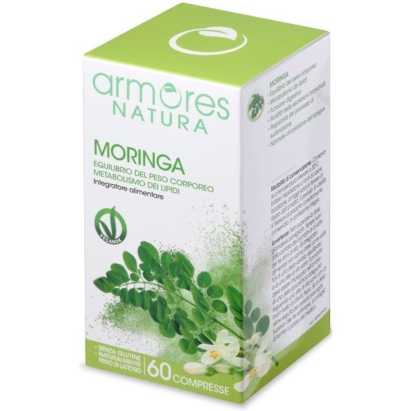 Descrizione Integratore alimentare a base di estratto di semi e polvere di foglie di moringa. L'azione della moringa è utile per l'equilibrio del peso corporeo, il metabolismo dei lipidi, la funzione digestiva, la fluidità delle secrezioni bronchiali, la regolarità del processo di sudorazione e la normale circolazione del sangue.