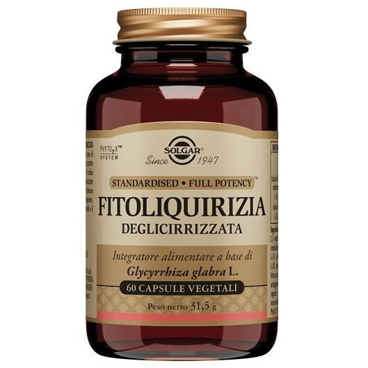 Descrizione Integratore contenente estratto standardizzato di radice di liquirizia (<1% glicirrizina). L'estratto è standardizzato per minimizzare la presenza di glicirrizina, uno dei componenti della liquirizia, principale responsabile dei suoi tipici effetti indesiderati relativi all'aumento della pressione arteriosa e alla perdita di potassio. Con PhytO2XTM System, una miscela di antiossidanti che preserva il prodotto dall'ossidazione garantendo stabilità nel tempo e qualità dell'estratto erbale.