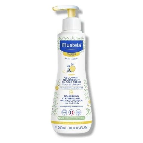 Utilizzato per detergere quotidianamente il corpo e i capelli dei bambini, il detergente nutre preservando la barriera protettiva della pelle secca.